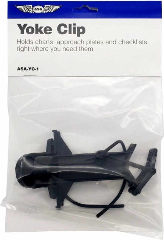 ASA’s new yoke clip holds all the necessary flight paperwork right where pilots need it, leaving their hands free to fly. Simple to install, the black plastic, I-Beam construction is strong enough to serve as a pilot’s third hand. The clip is higher than other yoke clips, holding sectionals, approach plates, flight logs, checklists, flight computers, and pens in easy view. The unique, over-centering cam easily adjusts to fit all general aviation aircraft yokes without modification.