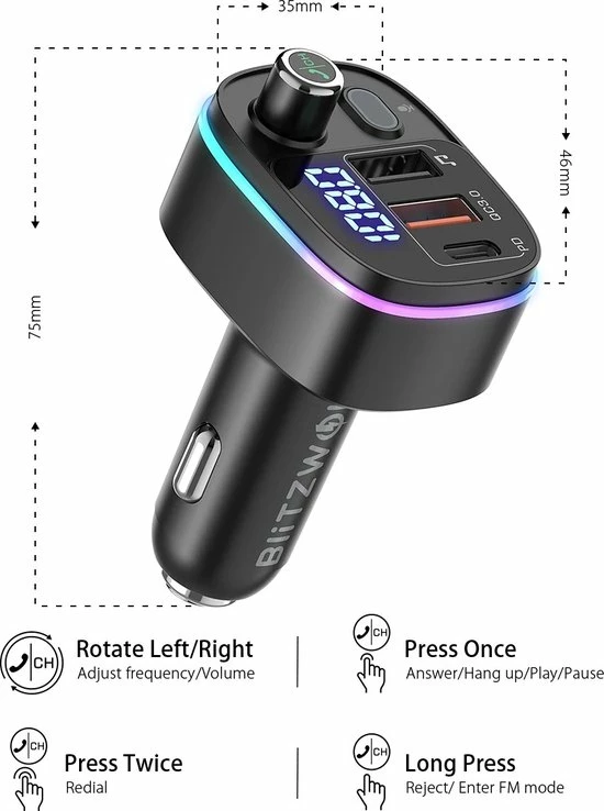 1 x BlitzWolf? BW-BC2 bluetooth FM-zender autolader