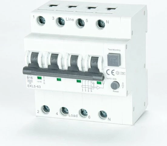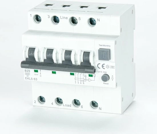 Installeer zelf uw EVlader met onze ETEK aarlek schakelaars met overstroom beveiliging. Technische specificaties: Type: Type A Aansluitingen: 2P(1P+N) / 4P(3P+N) Nominale spanning: 2P 240V~ / 4P 415V~ Nominale frequentie: 50/60Hz Nominale stroom: 16A / 25A / 32A / 40A Overstroom beveiliging: 30mA Thermomagnetische afgifte karakteristiek: B Montagewijze: DIN rail EN60715(35mm) Technische specificaties (https://cdn.webshopapp.com/shops/281908/files/378260618/ekl5-63-6ka-rcbo.pdf)