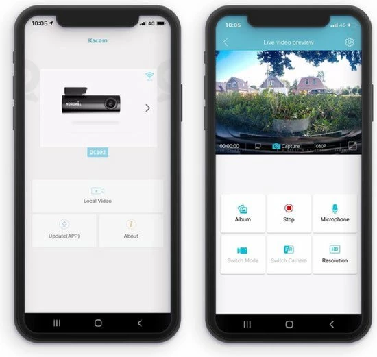 Dankzij de ingebouwde Wi-Fi kunnen alle opnames worden bekeken via je smartphone of tablet. De beelden kunnen via de app natuurlijk worden gekopieerd naar deze apparaten om een eventuele gebeurtenis te delen of veilig te stellen. Via de app kan je de instellingen wijzigen, is er live video weergave en kan de afgelegde route bekeken worden.