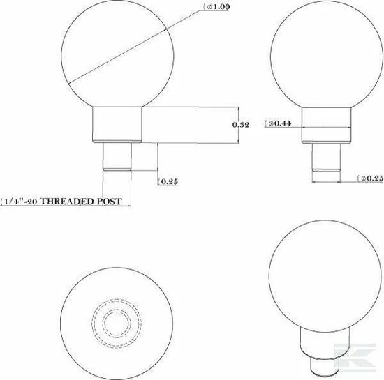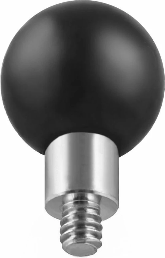 The RAM-B-237U, universal camera and camcorder base, consists of a 1″ diameter rubber ball, connected to a 1/4″-20 camera thread. The male thread matches most standard camera and camcorder female threads found on the bottom of the camera.