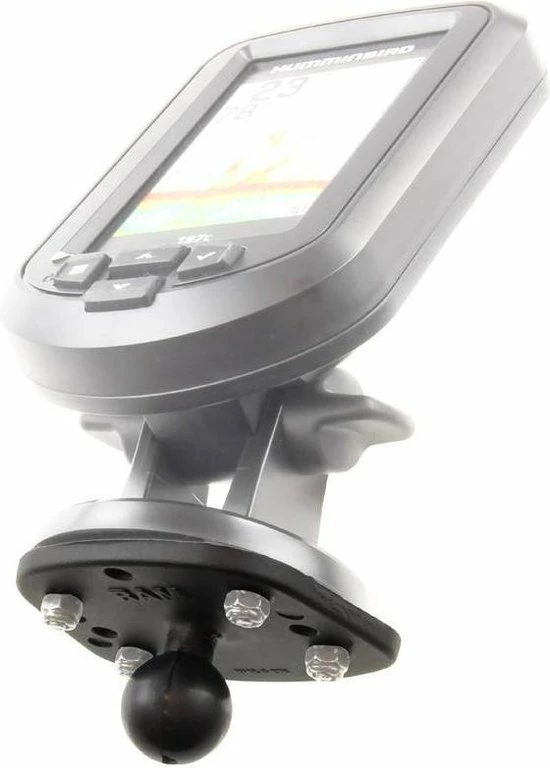 The RAM-B-107-1BU is a marine grade aluminum base with 1″ rubber ball. The base connects to the underside of Humminbird, Eagle and Lowrance marine GPS devices.