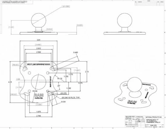 The RAM-107B is a marine grade aluminum base with 1.5″ rubber ball. The base connects to the underside of Humminbird and Raymarine marine GPS devices.